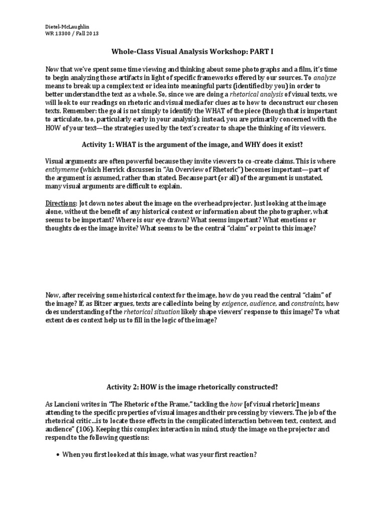 Visual analysis is the process of looking at a piece of visual art painting, photography, film, etc, visual analysis essay examples. In some cases, works are also analyzed for historical significance and their impact on culture, art, politics, and the social consciousness of the time.